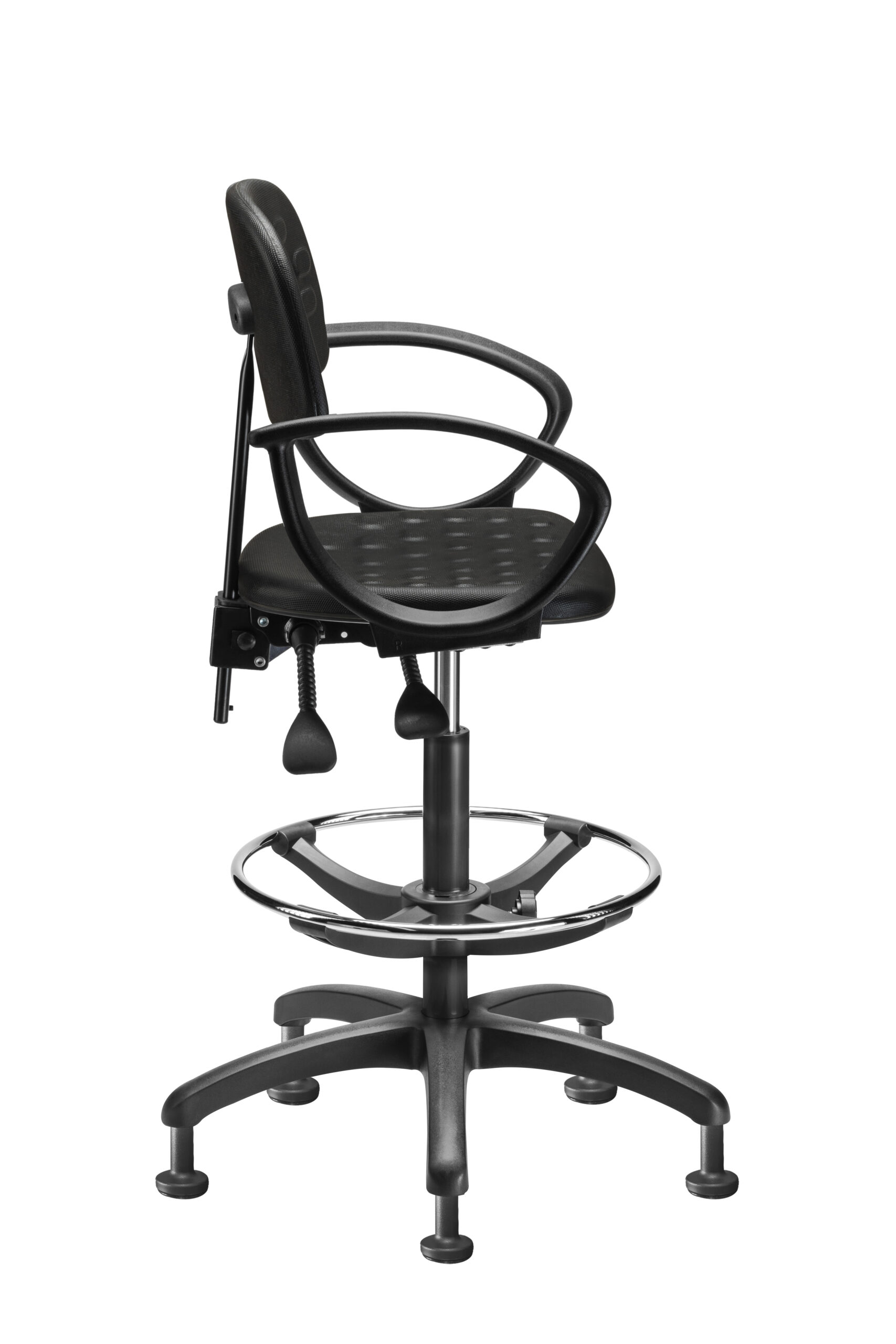 • Silla giratoria alta industrial/laboratorio/ensamble con coderas.