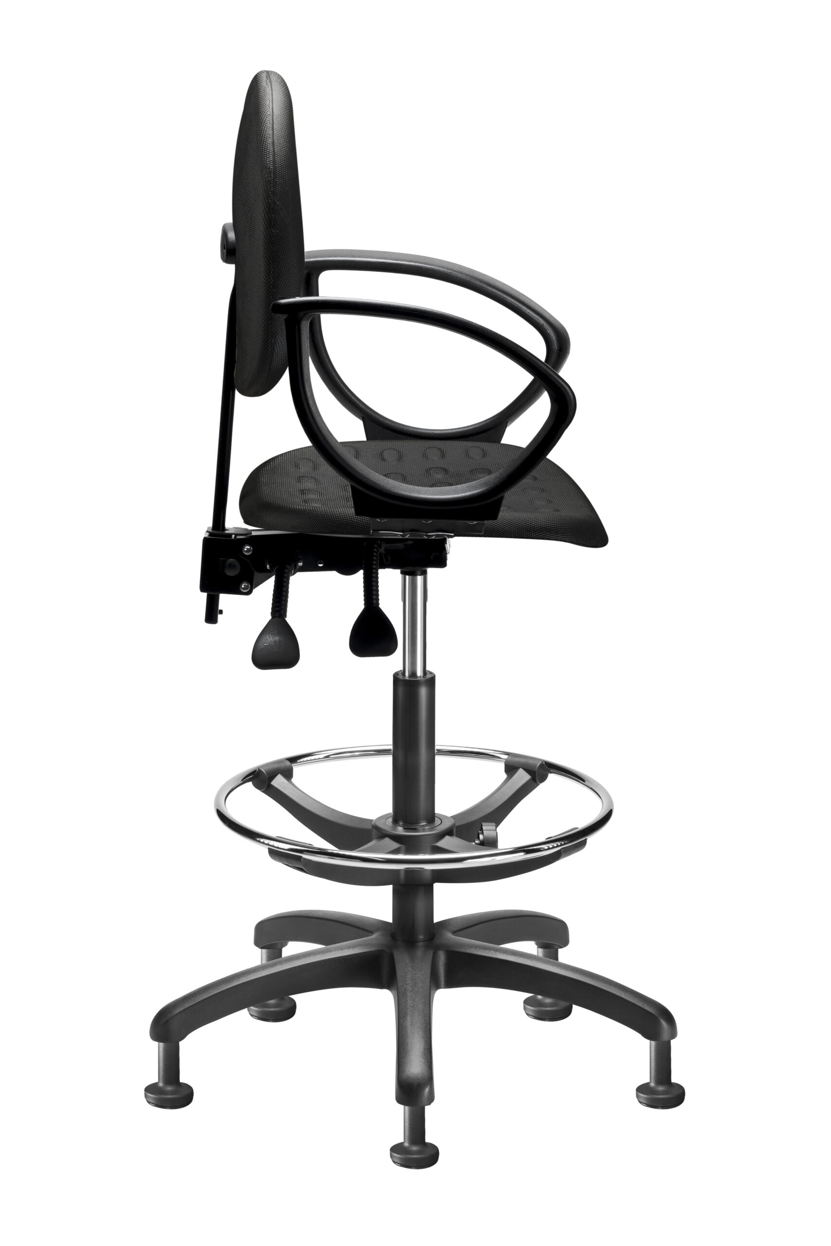 • Silla giratoria alta industrial/laboratorio/ensamble con coderas.